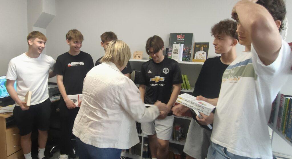 Wszyscy uczestnicy konkursu literackiego otrzymali w nagrodę książki, oczywiście o tematyce sportowej.